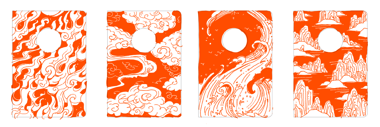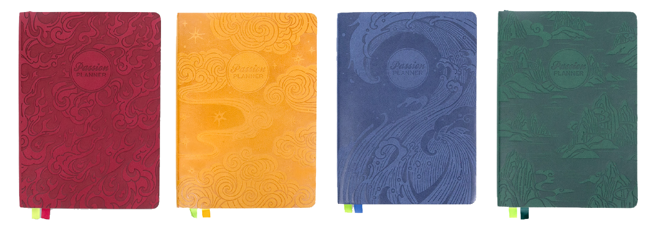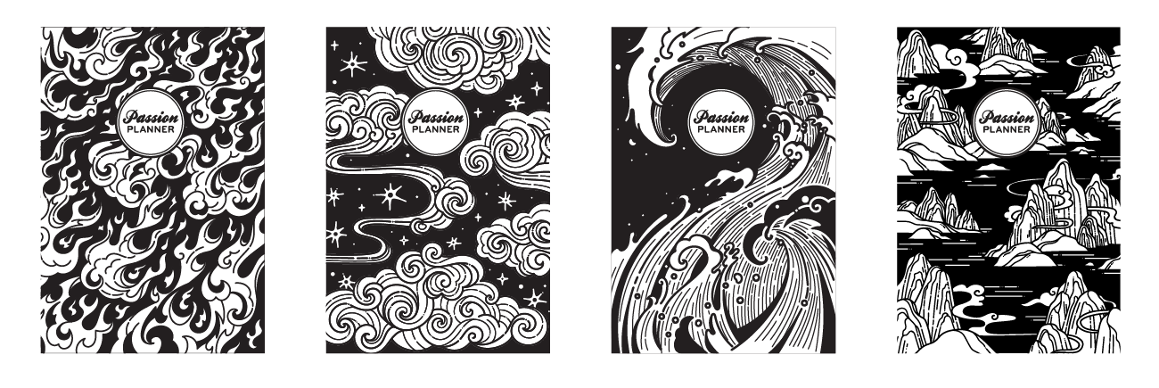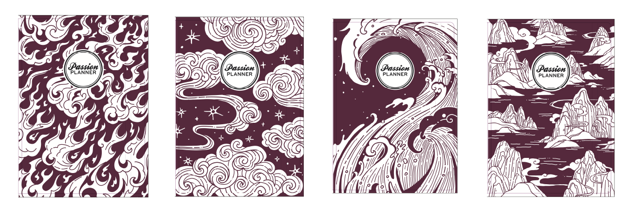 Elements of the East is a cover set designed for Passion Planner Daily planners. Each cover represents the four elements: fire, air, water, and earth. The art style is inspired by East Asian art.